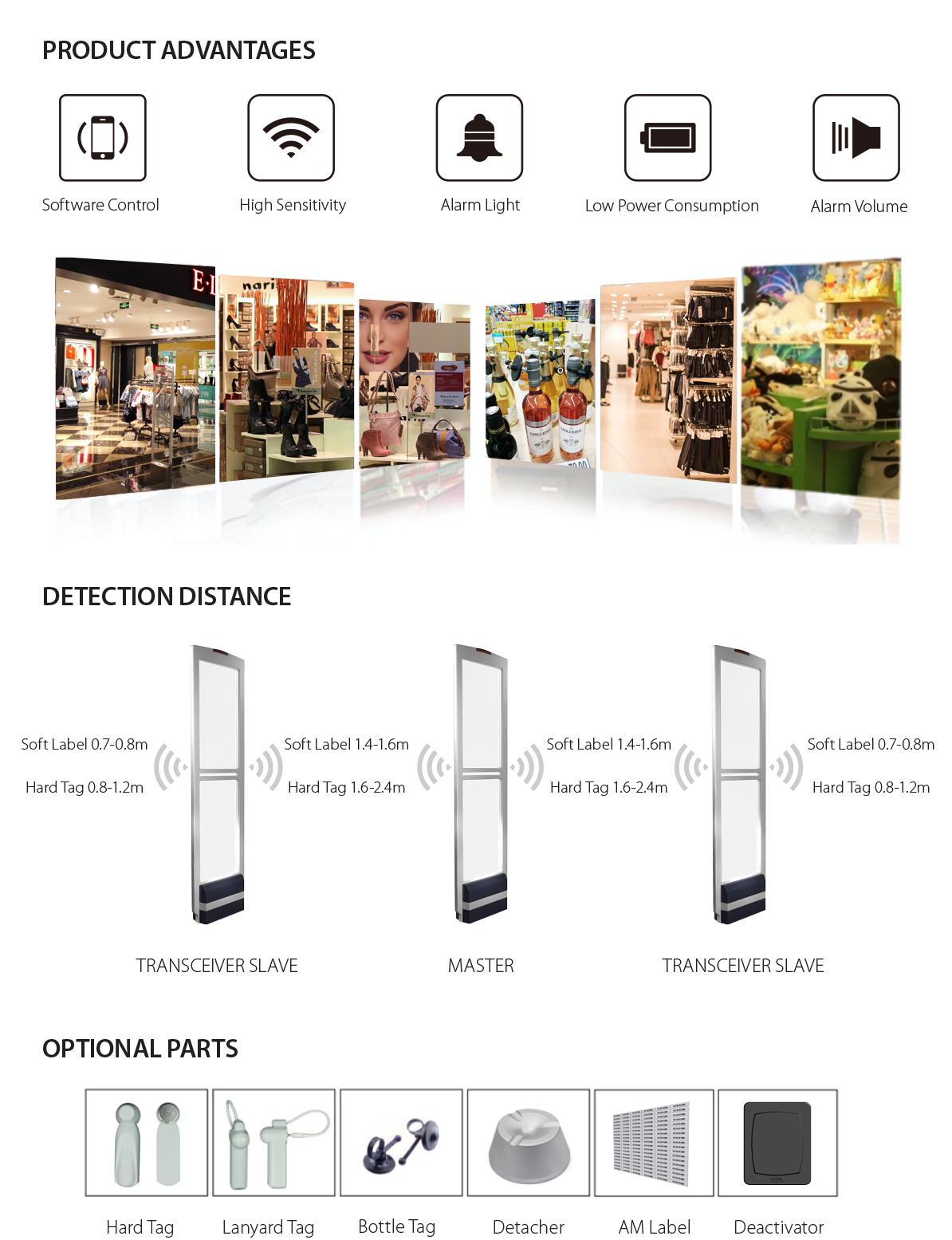 AM8208 system is an advanced software driven system capable of excellent detection of 58Khz DR labels and tags with good resistance to interference and intuitive software diagnostics, the AM200 system is an ideal choice for any stores.