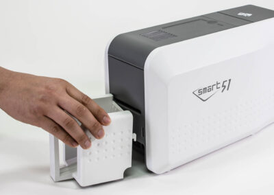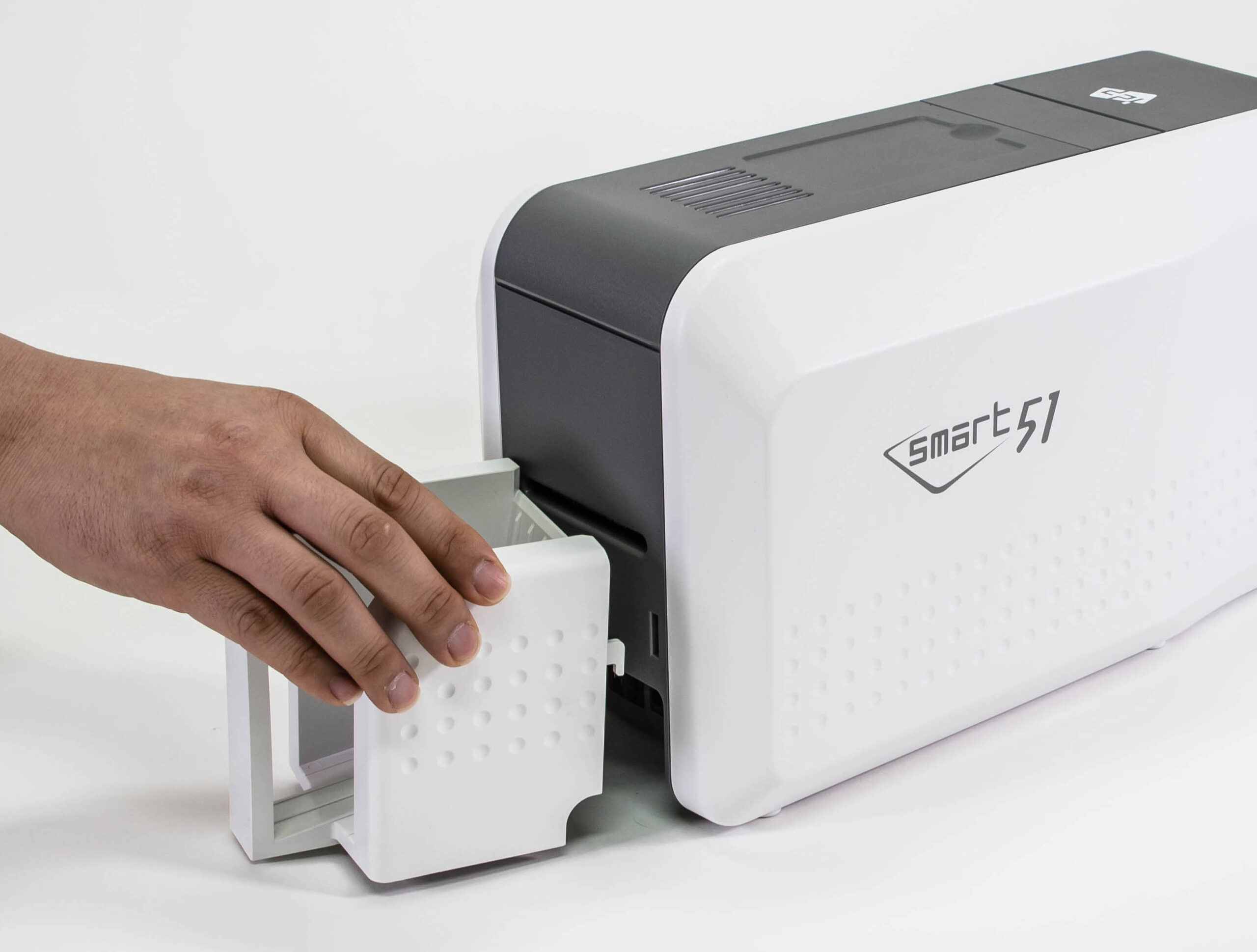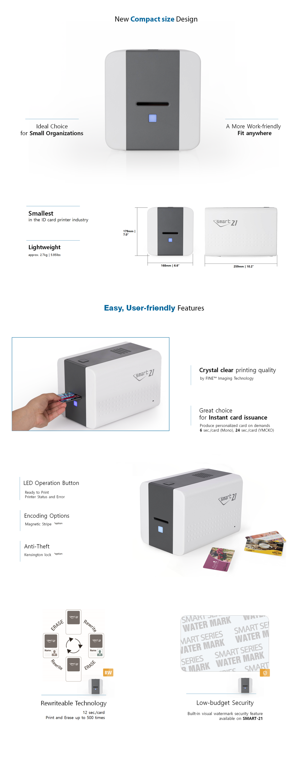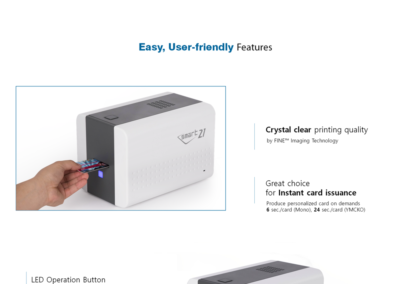 SMART-21 is a a simple hand-fed desktop ID card printer with compact lightweight design.